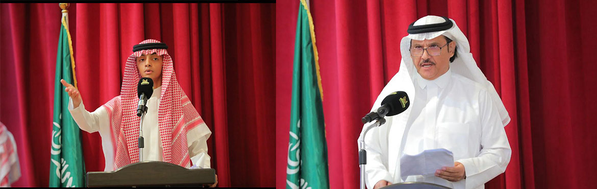 2. كلمة المشرف العام الأستاذ/ أحمد القرني الذي شدّد على أهمية غرس قيم المواطنة والوفاء في نفوس الطلاب، وربط الحاضر المزدهر بماضي المجد والتضحيات.